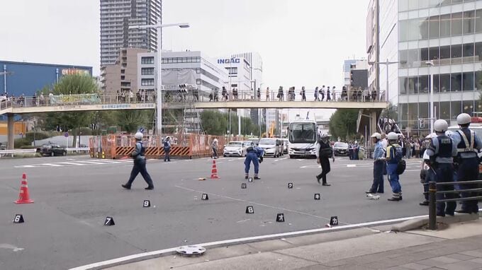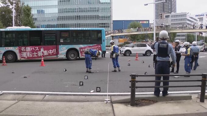 警察などによりますときょう午前7時40分ごろ、中村区名駅南の「下広井町」交差点で、バスターミナルの入り口を逆走してきた車が横断歩道を渡っている通行人を次々にはねました。