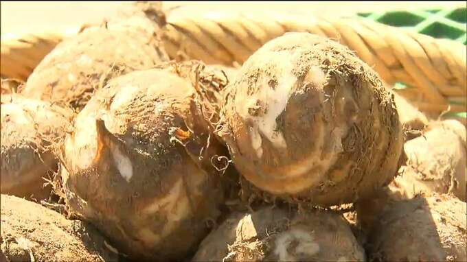 宮城県大崎市三本木の上伊場野地区で栽培されているのが伝統食材「上伊場野里芋(かみいばのさといも)」です。生産者のひとり、福田翔太さんは、約40アールの畑で栽培していて例年と同じ10月5日から収穫作業を始…