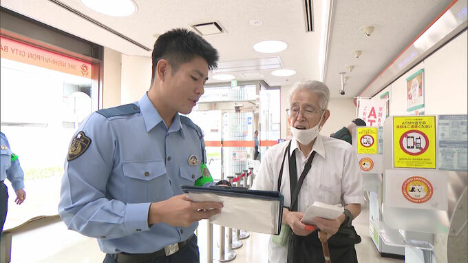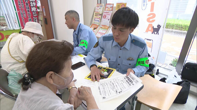 福岡市早良区の銀行で15日、2か月に1度の年金支給日にあわせて、警察官が高齢者たちにニセ電話詐欺などへの注意を呼びかけました。