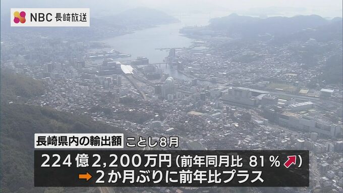 長崎税関によりますと、今年8月の県内の輸出額は224億2200万円で前の年の同じ月より81%増加して2か月ぶりに前年比プラスとなりました。パナマやキプロスなどに向けた新造船が4隻と、前年を2隻上回ったことが主な要因となっています。