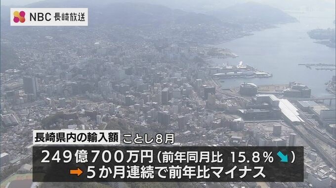 今年8月の長崎県内の貿易額は輸入額が輸出額を上回り、2か月連続で輸入超過となりました。