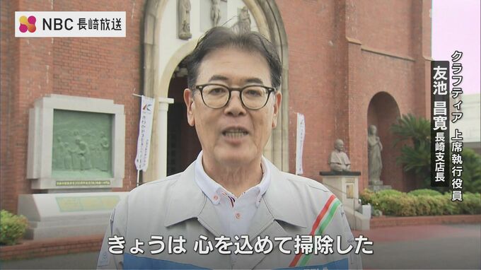 クラフティア長崎支店・友池昌寛支店長「素晴らしい建物にですね、たくさんの方が来ていただけるというのを願って今日心を込めて掃除させていただきました」