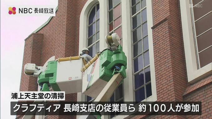 長崎市の浦上天主堂で15日、ボランティアによる清掃活動が行われました。