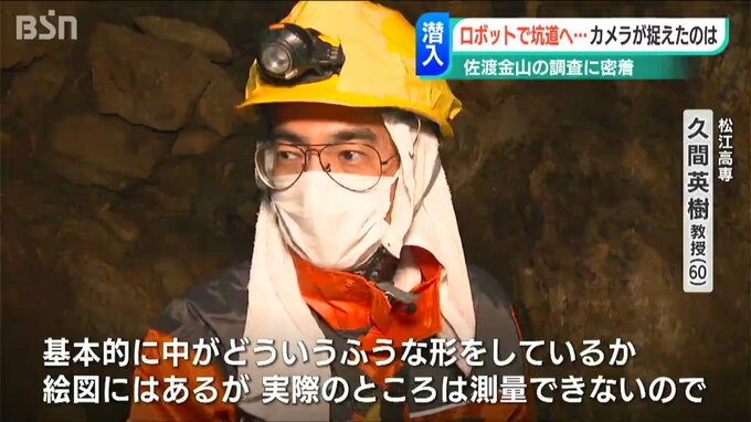 調査にあたるのは久間英樹教授60歳。島根県の松江工業高等専門学校でロボット工学を指導するかたわら、全国の鉱山遺跡に足を運びロボットを使って坑道を計測する世界唯一の研究者です。