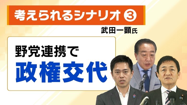 野党が連携して政権交代となるというのが3つめのシナリオです。このケースでも、2つのパターンが考えられると言います。