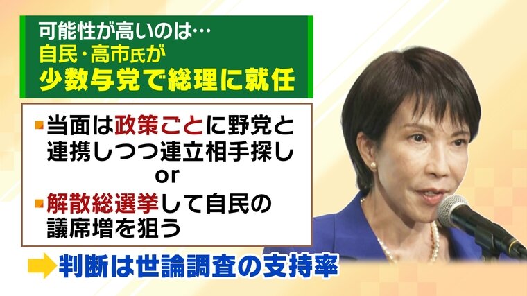 「少数与党で高市氏が総理に就任する可能性が高い」とジャーナリスト・武田一顕氏は見ていますが、その場合、2つのパターンが考えられるそうです。