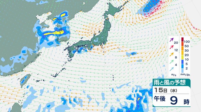 【台風情報】新たな「熱帯低気圧=台風のたまご」あす(16日)発生の見込み 今後の影響はどうなる?気象予報士が解説 週末18日・19日の天気の雨風シミレーション【気象庁 15日午後8時更新】 RSK山陽放送 2025年10月15日(水) 20:00 国内 15日~20日までの「雨と風の天気シミレーション」をみる 15日(水)3時間ごとの雨と風のシミレーションは【画像⑤】の通りです。 【画像⑤】