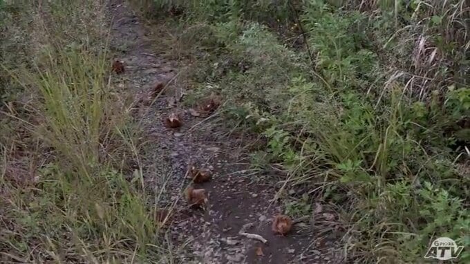 地面に落ちていたクリを拾っていくなかで、ふと男性が顔をあげると…