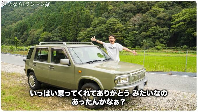 一方で、思い出深いエピソードとして「車で、家族で遊びに行こうという時に京都の美山へ向かって」「駐車場でエンジンかからんかった」「そのままレッカー移動で帰って」と家族旅行の苦い思い出も。「嫁がめちゃくちゃ怒って、でも子どもは子どもで、『逆に、良い思い出やな』って言ってくれて」と笑顔で振り返り、ラシーンへの深い愛情を語っていました。