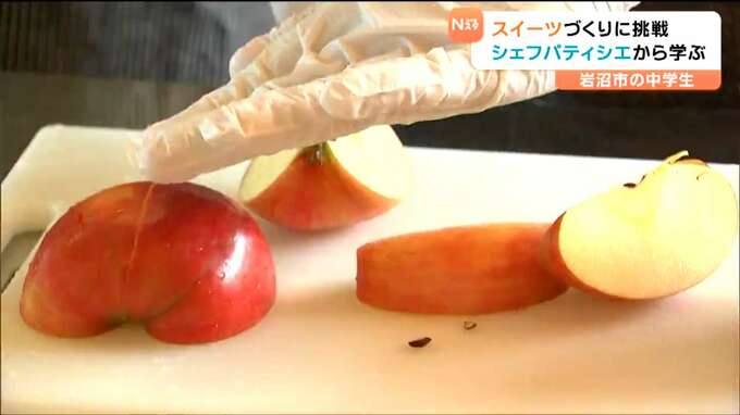 生徒たちが、地元産のリンゴなどを使ったスイーツづくりに挑戦しました。