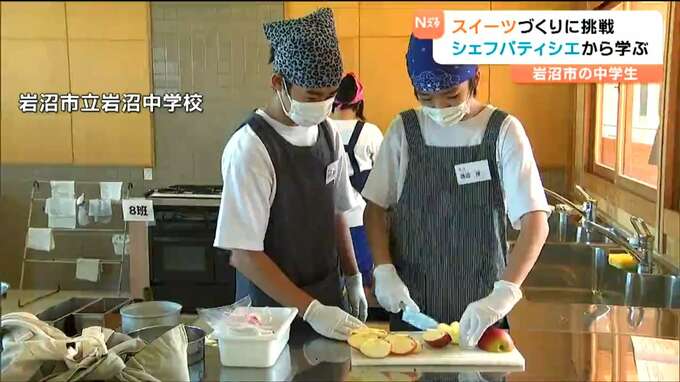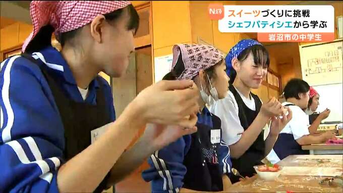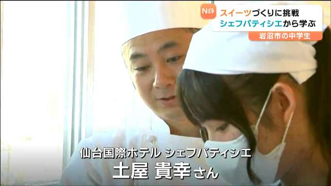 パティシエからお菓子づくりについて学ぶ特別教室が、宮城県岩沼市の中学校で開かれました。