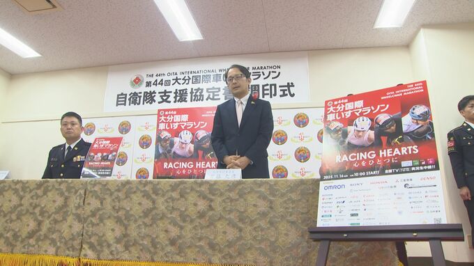 11月16日開催される「大分国際車いすマラソン」に向けて、15日、大会事務局は陸上自衛隊と運営の支援に関する協定を結びました。