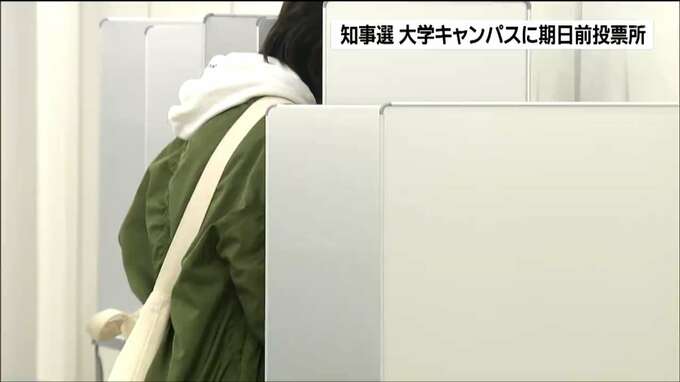 10月26日投開票の宮城県県知事選挙で、若い世代の投票率を上げようと、仙台市若林区の東北学院大学五橋キャンパス内に期日前投票所が設置されました。受け付け開始とともにさっそく有権者が訪れ学生も1票を投じて…