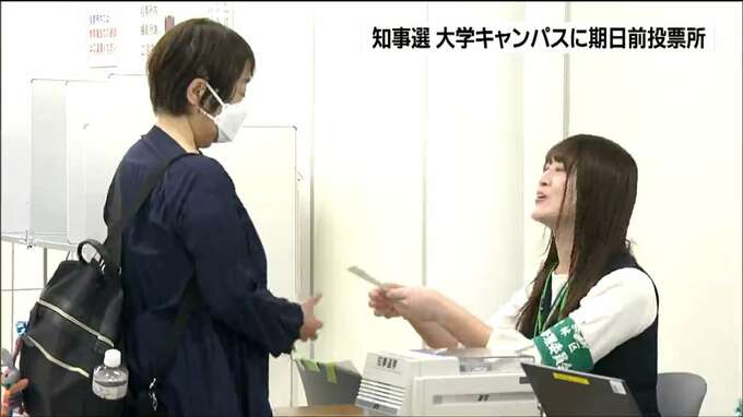 10月26日投開票の宮城県県知事選挙で、若い世代の投票率を上げようと、仙台市若林区の東北学院大学五橋キャンパス内に期日前投票所が設置されました。