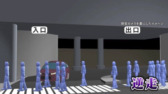 事故現場は、むかって左側は入口ですが、事故を起こした軽乗用車は、上から入口側に逆走する形で大勢の人が渡っている横断歩道に突っ込んできたのです。