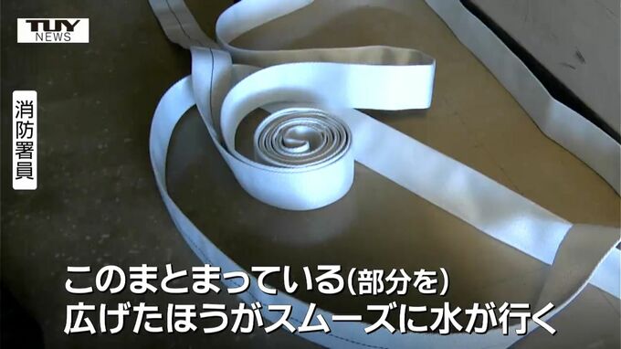 消防職員「もし本当の火災の時に(ホースを)のばす場合は必ず全部、このまとまっているのを広げたほうがスムーズに水が行く」
