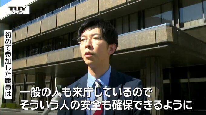 初めて参加した県職員「訓練をやっていないことは有事の際にもできないんだなと思った。一般の人も来庁しているので、そういう人の安全も確保できるように、庁舎全体に広まるようにまず声を出すことが大事だと思う」