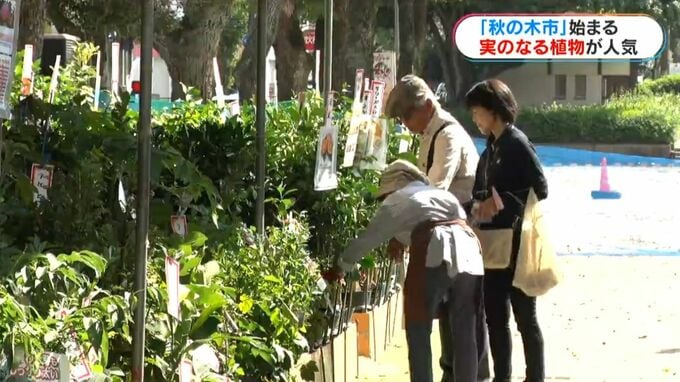 鹿児島市の甲突川沿いで15日から恒例の「秋の木市」が始まりました。物価高で「実のなる植物」が人気です。