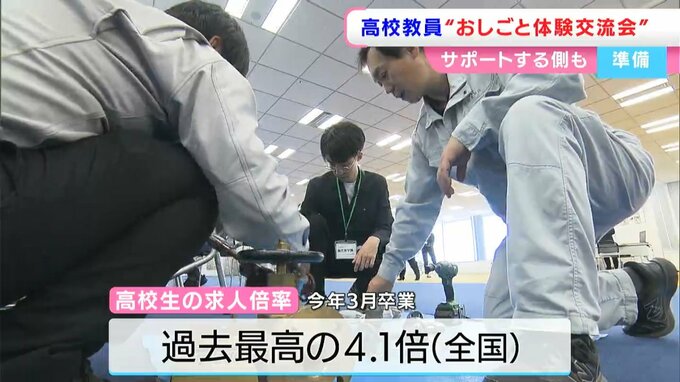 労働力の不足が深刻化する中、企業が期待をよせるのが高校生の採用です。そうした中、生徒たちの就職活動に向け進路指導を担う教員が、実際に仕事を体験するというユニークなイベントが岡山市で開かれました。