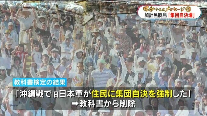 太平洋戦争末期の沖縄戦。島の4人に1人が亡くなった地上戦では、多くの住民が洞穴などで「集団自決」に追い込まれました。しかし、「軍の強制」が削除されたことに、当時沖縄では反発した市民ら11万人が集会に詰めかけました。