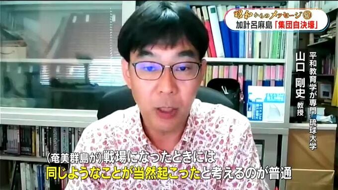 (平和教育が専門・琉球大学 山口剛史教授)「32軍が沖縄戦の中で編成されるが、範囲は奄美から与那国まで。軍の作戦の枠・規模、当然奄美が入っている。言い方は変ですが、奄美も沖縄戦なんだということ」