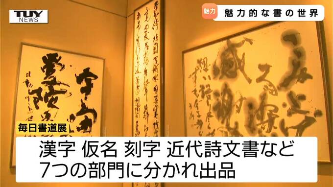 作品は漢字や仮名、刻字、詩や現代文を題材にした近代詩文書など、7つの部門に分かれていて、それぞれに書き手の「想い」が込められています。