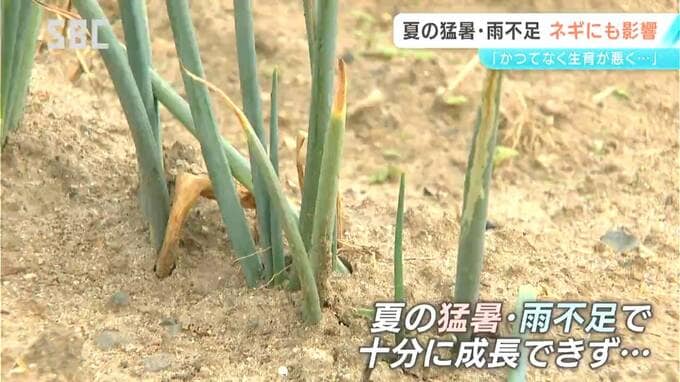 今年の夏は猛暑で雨が少なく、ネギが十分に成長できなかったといいます。