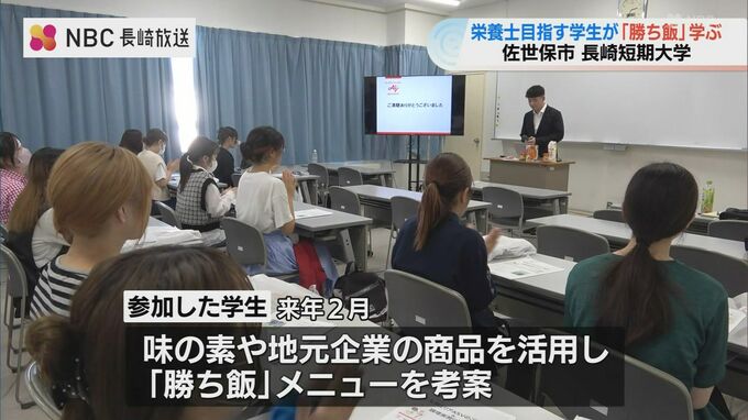 佐世保市の短期大学で栄養士を目指す学生が、スポーツに特化したメニュー作りを学ぶ特別講義が行われました。