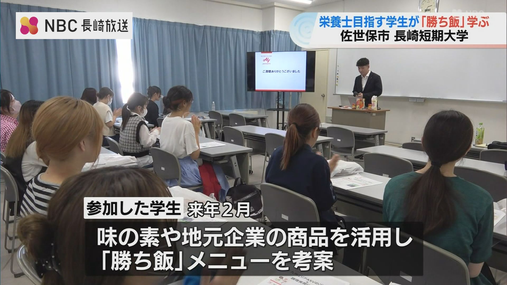来年2月には学生たちが味の素や地元企業の商品を活用して「勝ち飯」メニューを考える実習も行われるということです。