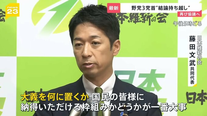 「大義を何に置くか、国民の皆様に納得いただける枠組みかどうかが一番大事。野田代表がかなり誠心誠意、丁寧にお話をされた姿勢については歩み寄りも感じられた」