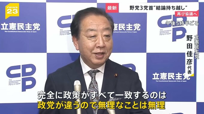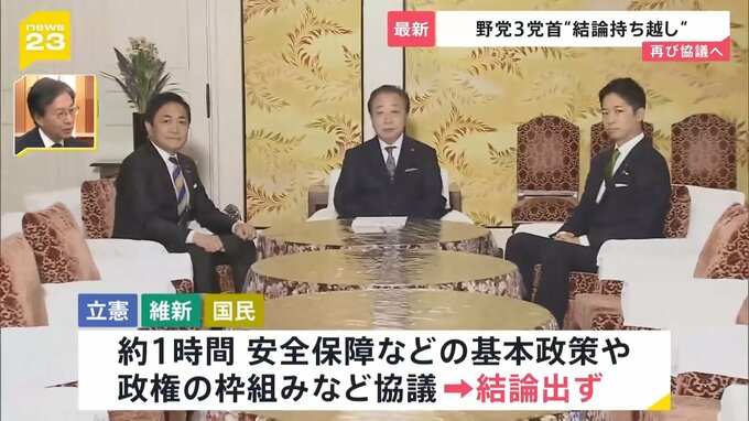 野党3党会議も“結論持ち越し” 今後再び協議へ