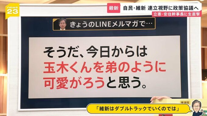 15日朝の安住幹事長のメルマガでも「そうだ、今日からは玉木くんを弟のように可愛がろうと思う」というユニークな投稿もされていますね。