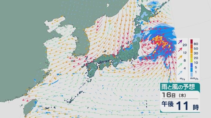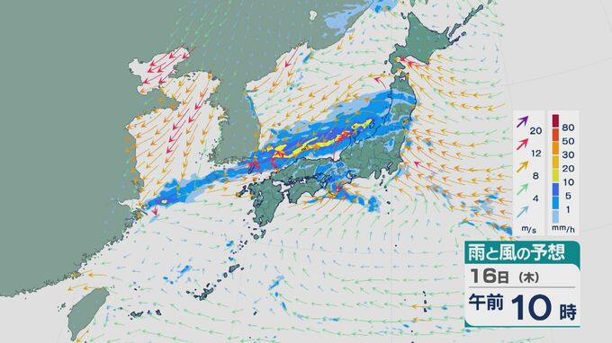 16日の雨と風の予想ですが、昼前から北陸では雨脚が強まるでしょう。