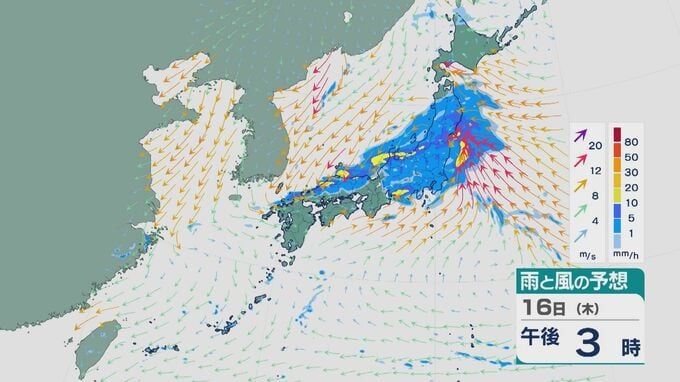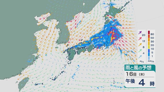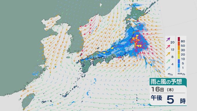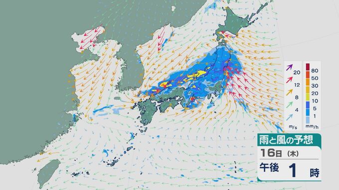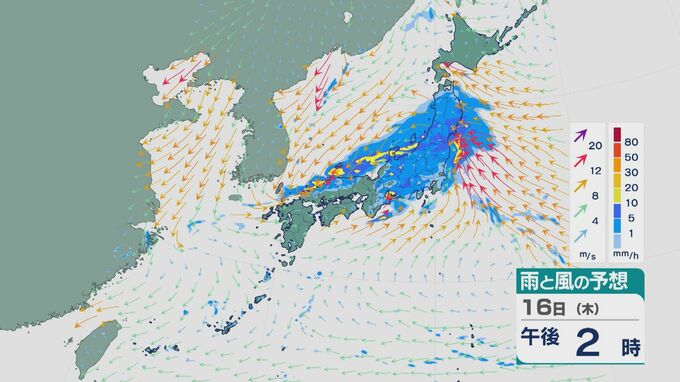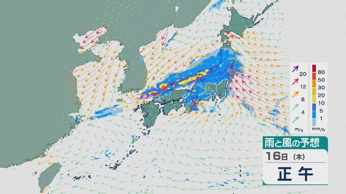 低気圧が陸地を通過する昼過ぎ以降は、関東や東北でも雨の降り方が強まりそうです。