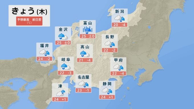 北陸では、日中雨が激しく降る見込みです。17日(金)午前6時までの24時間に降る雨の量は、石川県で120ミリと予想されています。