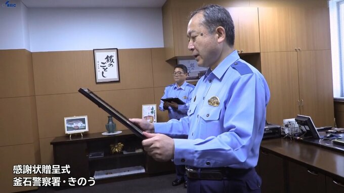 岩手県釜石市で誤って海に転落した釣り人を救助したとして、県内に住む男性3人に15日警察から感謝状が贈られました。