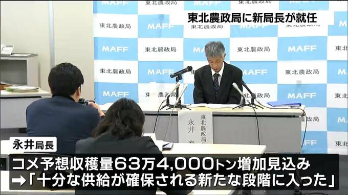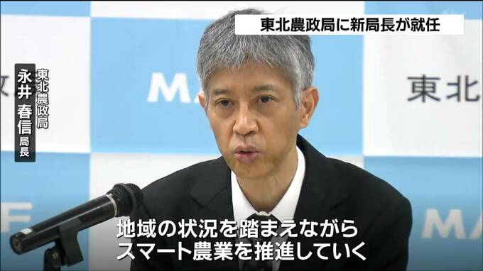 永井局長は15日の就任会見で「東北は畜産や農業にとって重要な地域」と述べ、農業の担い手不足解消やスマート農業技術の普及に力を入れたいと抱負を語りました。