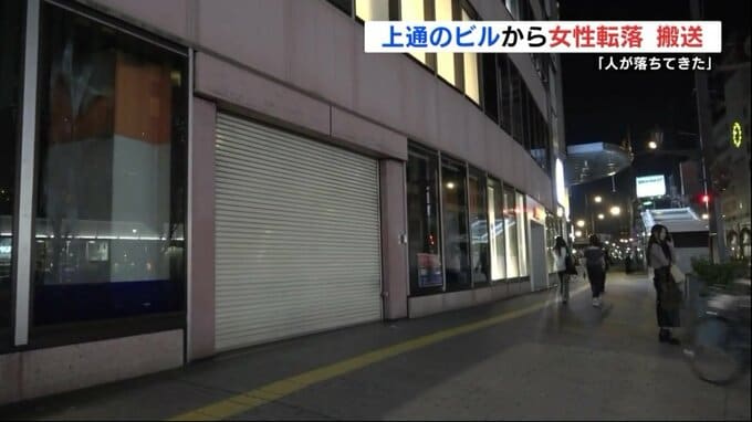 10月15日夜、熊本市中央区にある繁華街のビルから女性が転落しました。女性は病院に運ばれ、現在も治療中です。