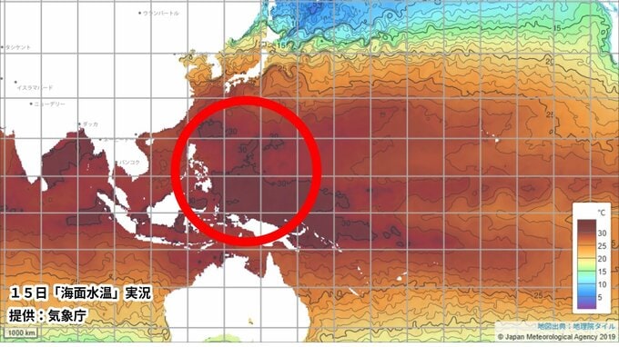 「台風の発生や発達を考える上で、一つの目安となるのが『海面水温』です。一般的に台風は、海面水温が26℃~27℃の海域で発生するといわれおり、海面水温が27℃以上であれば発達する可能性があります」