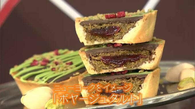 テーマは「旅するスイーツ」。こちらは、ニューヨークをイメージしたタルトです。ピスタチオペーストにアメリカンチェリーソースが入っていて、上品な味わいを楽しむことができます。
