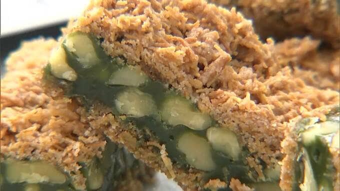 シチリア島のカンノーリをアレンジした和菓子。源 吉兆庵が、関係者向けに開いた春夏商品の発表会には9つのブランドから390の商品が並びました。