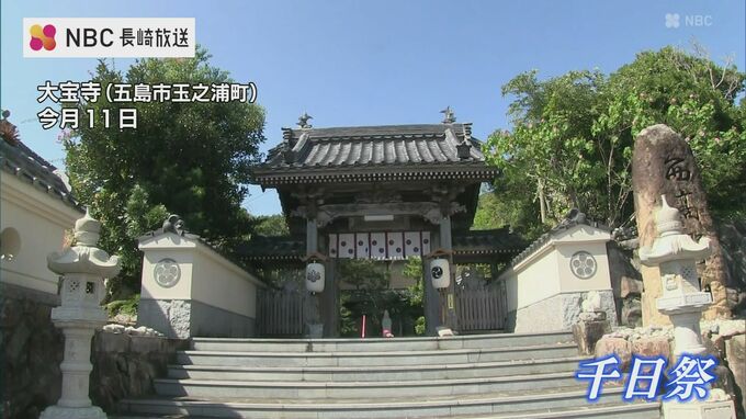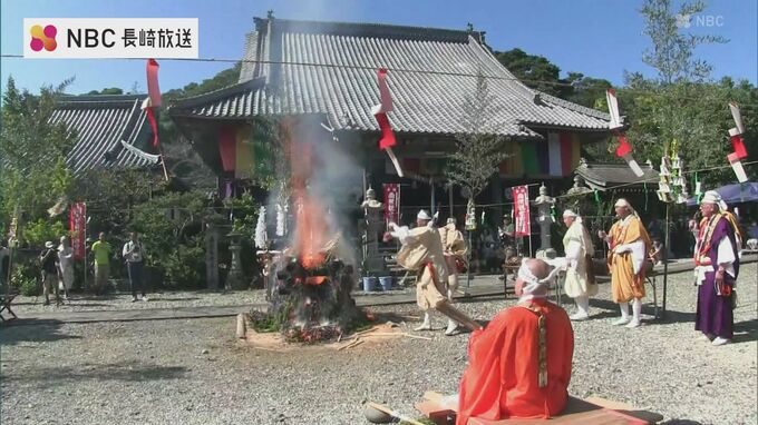 五島市玉之浦町の大宝寺。この日は年に一度の千日祭です。無病息災や家内安全など、それぞれの願いを護摩木に託します。