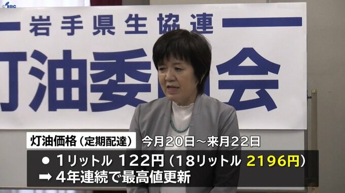 岩手県生協連は16日、今シーズン最初の灯油委員会を開き、20日から1ヶ月あまりの灯油価格を1リットルあたり122円とすることを決めました。