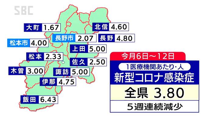 保健所別では、飯田が6.43人、上田と諏訪が5人などとなっています。