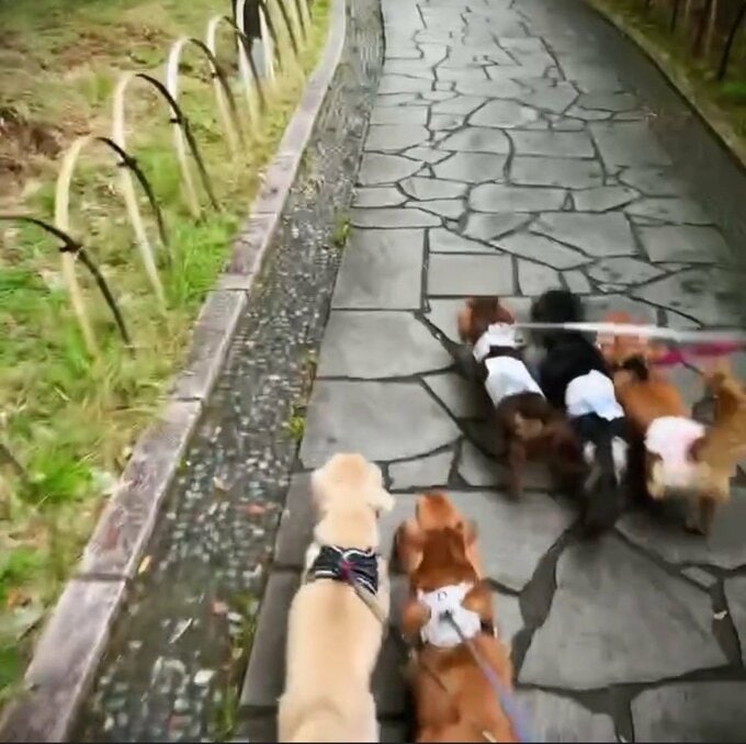 また修善寺を散策する動画も投稿されており、竹林の道を歩く様子や、複数の犬をリードでつないで歩いている場面も映し出されています。