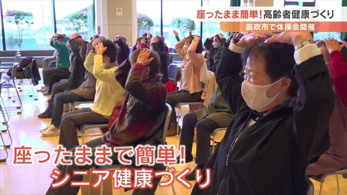 高齢の女性を対象にした健康づくりの催しが、山梨県笛吹市で開かれました。チャレンジしたのはタオルを使って、イスに座ったままできる体操です。こぶしを突き出す高齢者たち。笛吹市シニアクラブ連合会の女性委員…