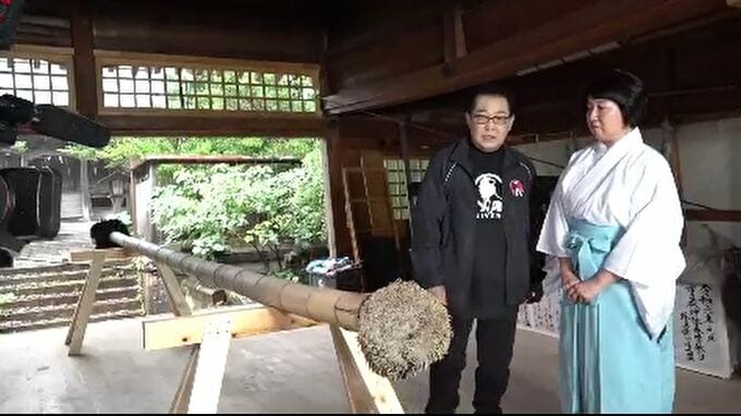3月に奈良市の東大寺二月堂で行われた修二会で、さださんは地震と豪雨の被害に見舞われた能登に思いを寄せ、松明の竹を献上しました。竹は、ふだんは東大寺に保管されますが、今回、特別に長さおよそ7メートルの竹でできた松明が、重蔵神社に運ばれました。