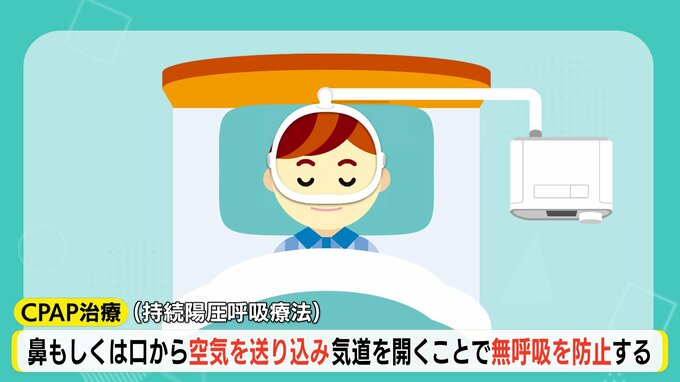 ディレクターに提案されたのは、CPAP治療。睡眠中、圧力をかけた空気を鼻から送り込み、気道を広げることで、無呼吸を防ぐ治療法。桑原さんもCPAPを体験しました。