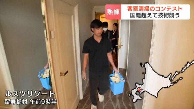 コンテストは、ルスツリゾートが初めて企画。110人の清掃スタッフの中から、12人が参加しました。