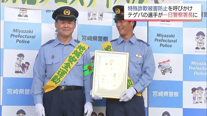 サッカーJ3、テゲバジャーロ宮崎の選手が一日警察署長を務め、特殊詐欺被害の防止などを呼びかけました。宮崎北警察署の一日署長に委嘱されたのは、テゲバジャーロ宮崎の江川慶城選手で、16日は宮崎市のイオンモ…